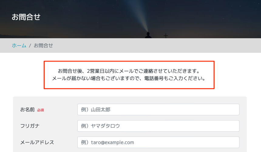 サイト上で確認するとフォーム冒頭のテキストが上書きされているのが確認できます。